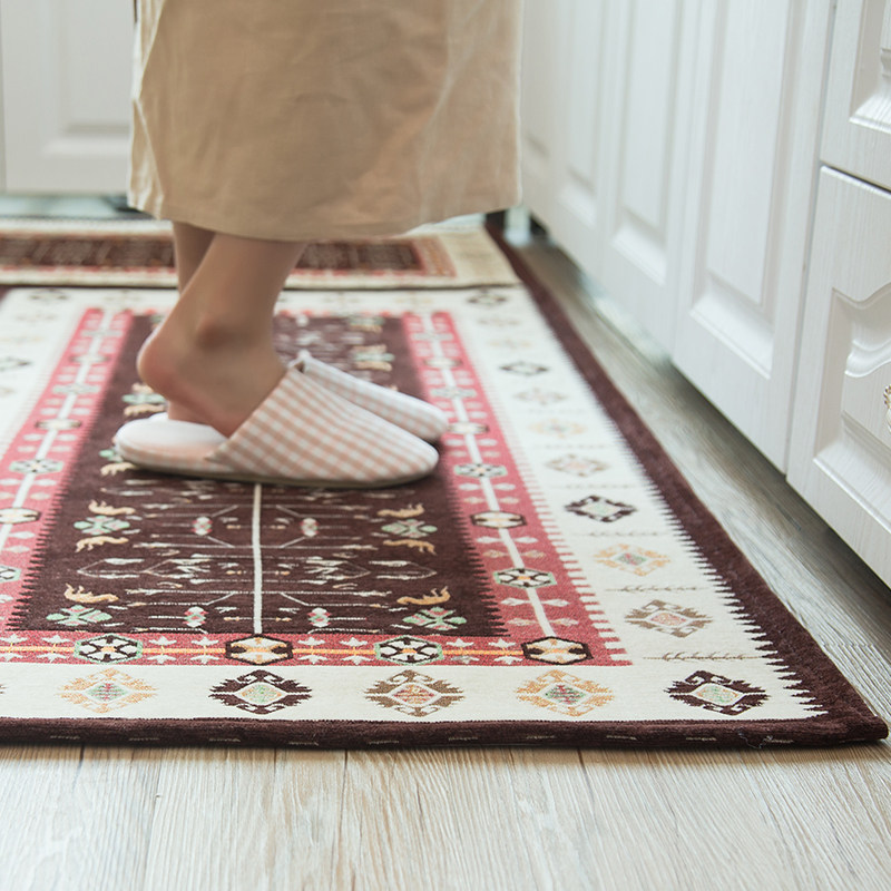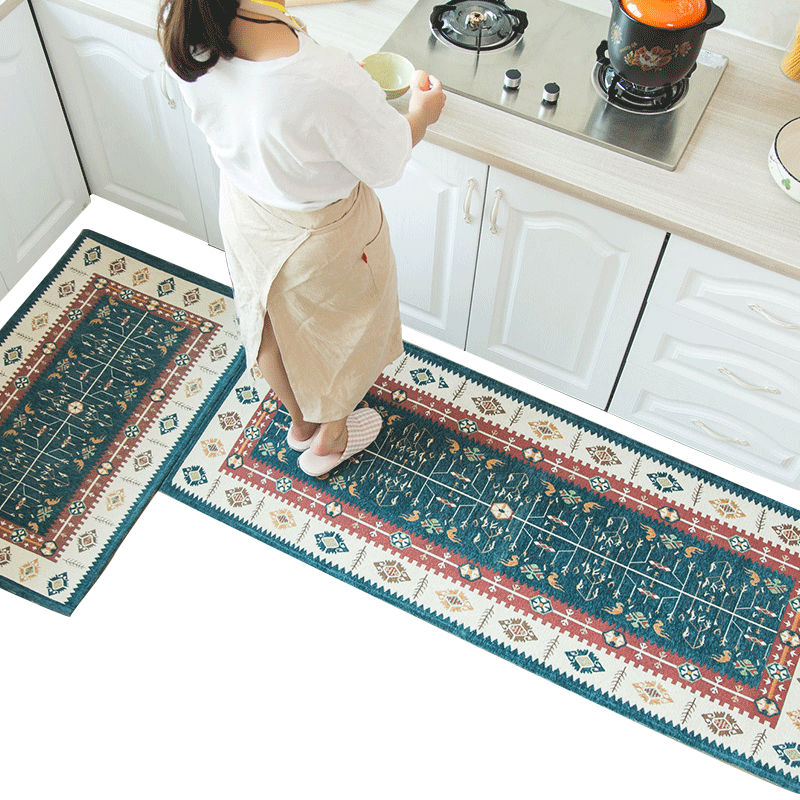 (Kitchen)Kitchen floor mat Long absorbent non-slip floor mat Mediterranean household hand washable mat Bedroom floor mat