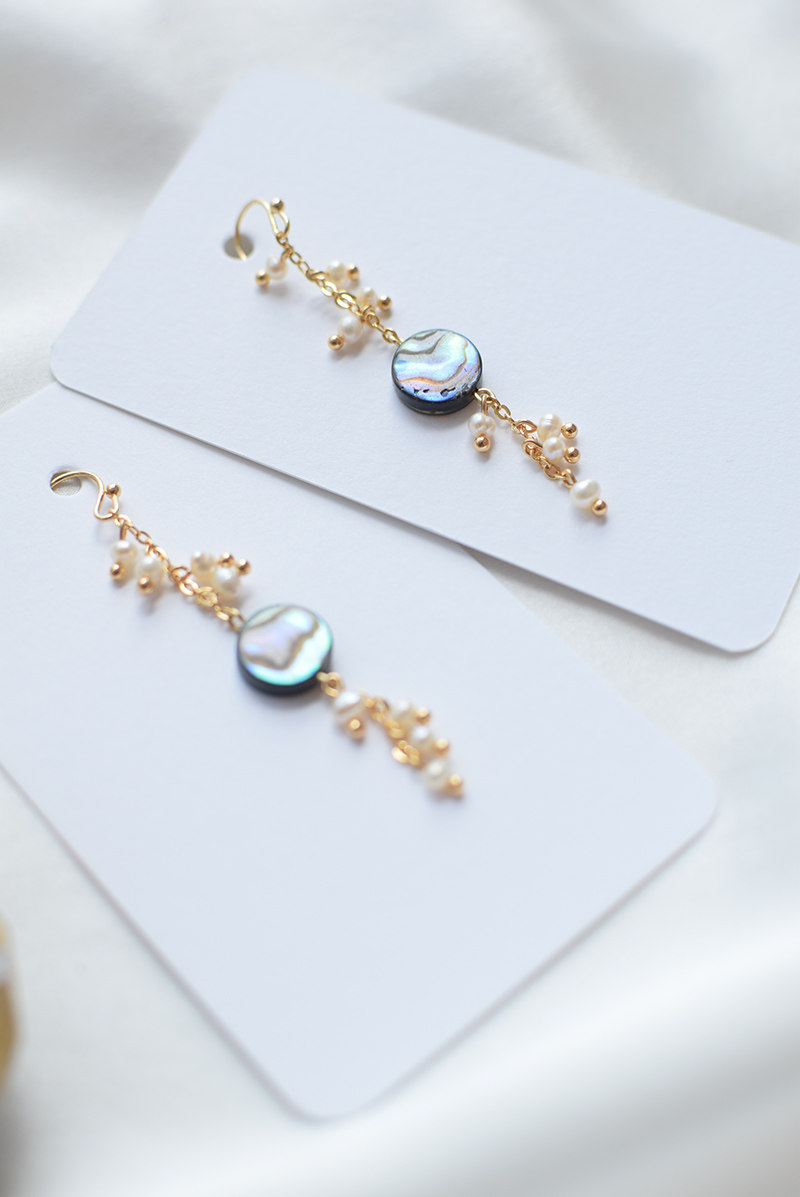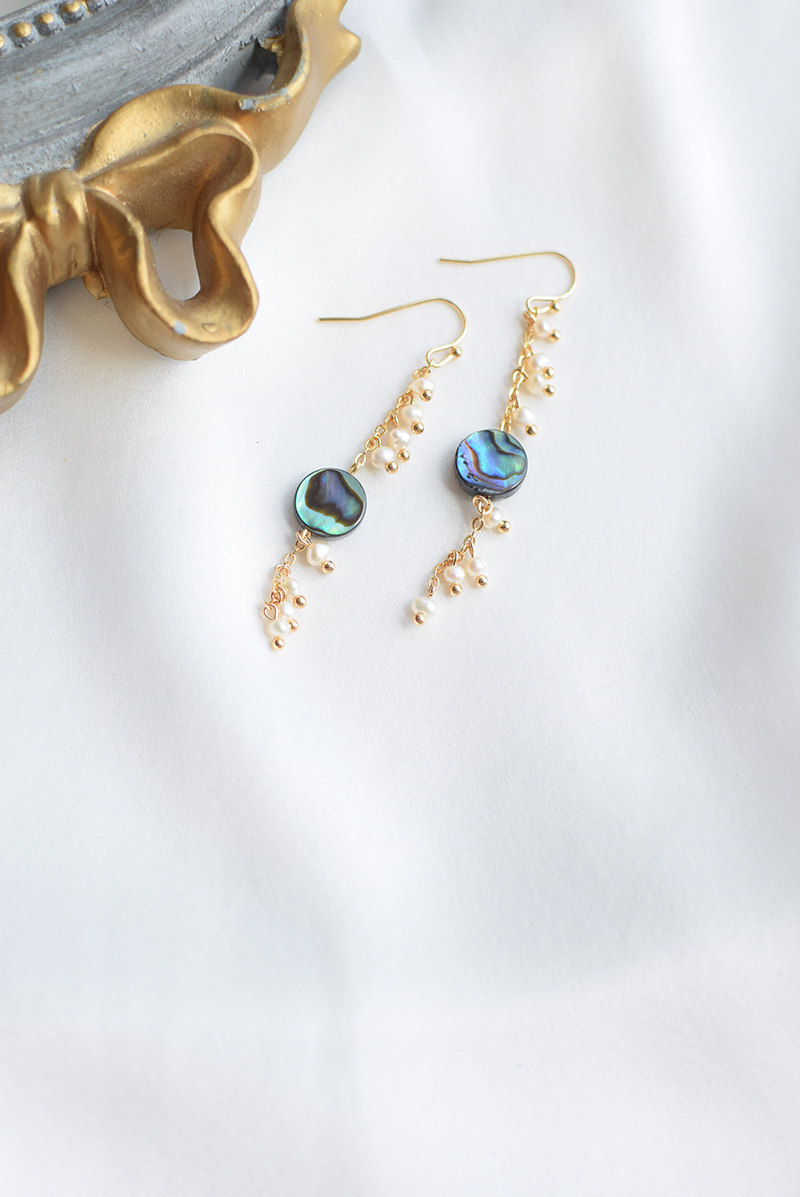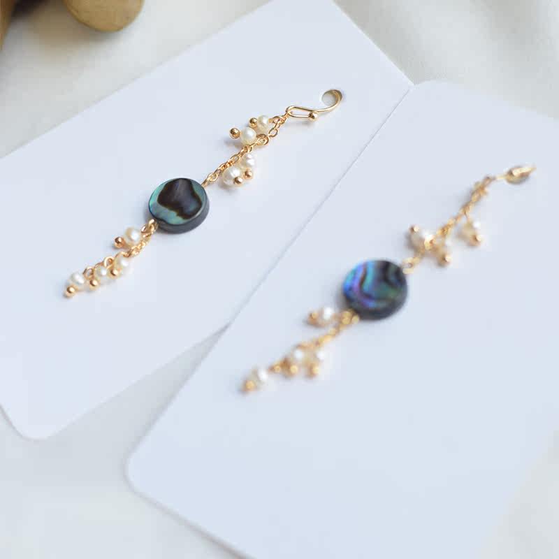 Original design-deep sea ink light-Japanese natural abalone shell pearl elegant temperament tassel earrings ear clip