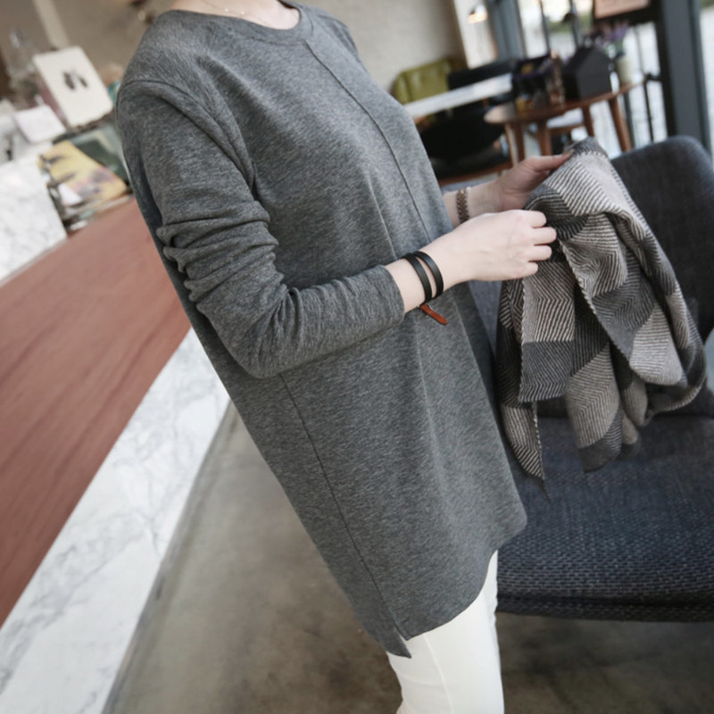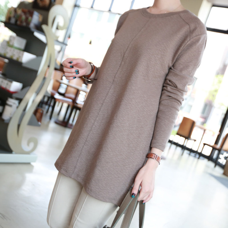 U home medium and long version solid color T-shirt spring and autumn women's 2022 new Korean version loose bottoming shirt long-sleeved casual top