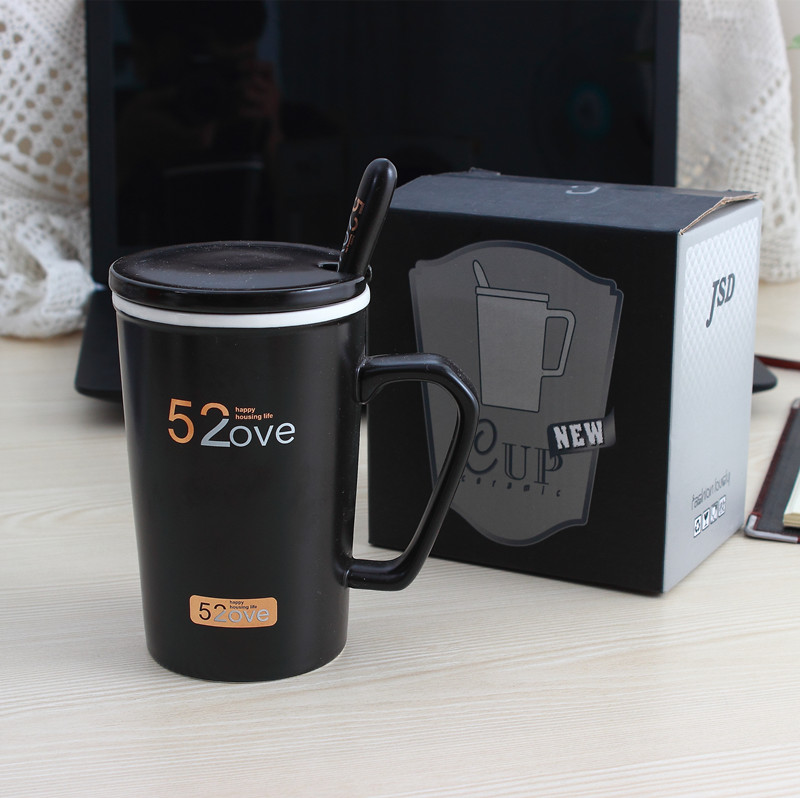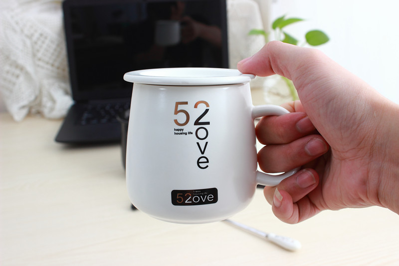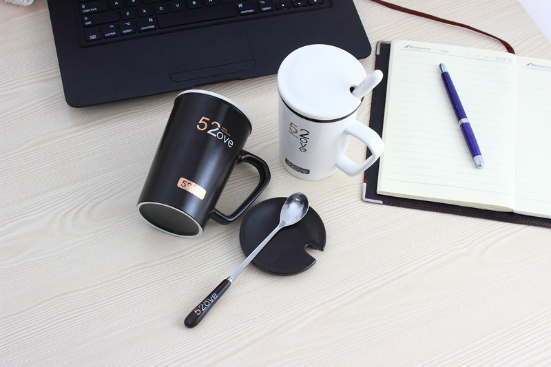 Couple minimalist creative personality Mark cup with lid spoon Ceramic Water Cup milk cup Coffee cup Drink cup Custom