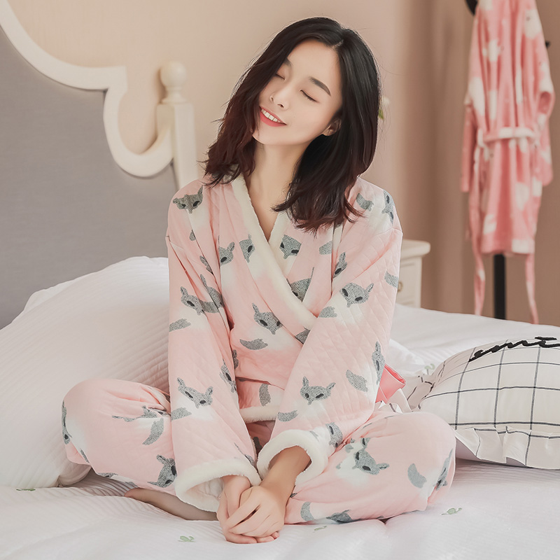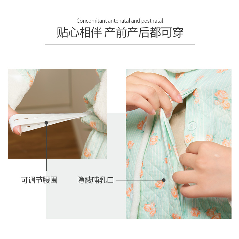 Pregnant Woman Sleepwear Woman Autumn Winter Pregnancy Home Conserved Pure Cotton Postnatal Maternal Baby Laces Dressing thickened