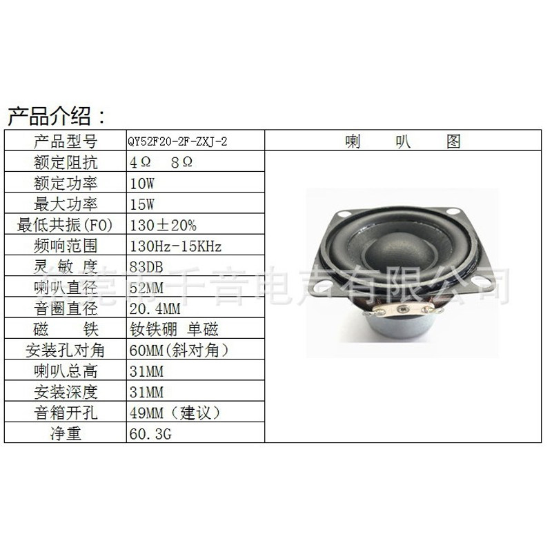 2 inch square woofer 52mm square full frequency speaker strong bass high power 4 Euro 8 Euro 10W
