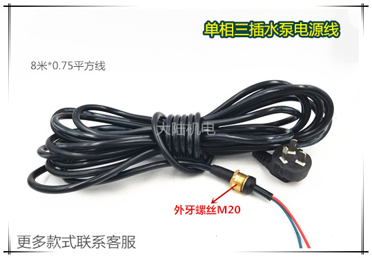 Water Pump Accessories Deep Well Pump Power Cord Single Phase Deep Well Pump Triple Plug Wire Submersible Pump Power Cord 0-75 Square