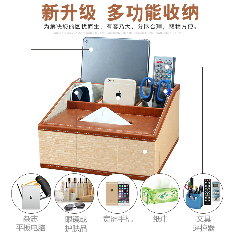 Leather European living room coffee table remote control desktop storage box Multi-functional creative household tissue box Toilet paper box