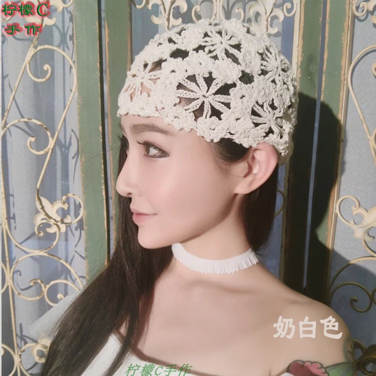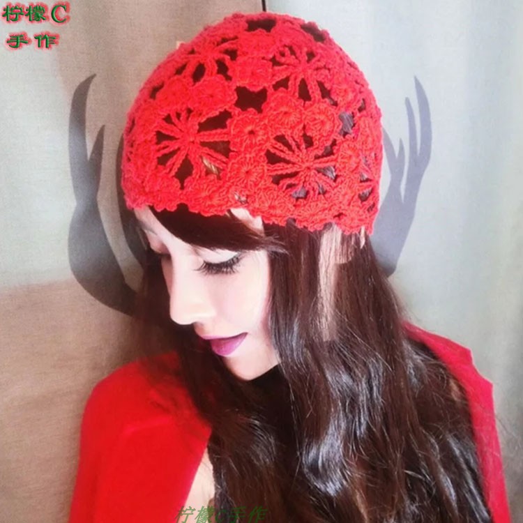 Lemon C hand-made diy crochet cotton thread plum hat new hand-knitted girls summer cool hat finished product