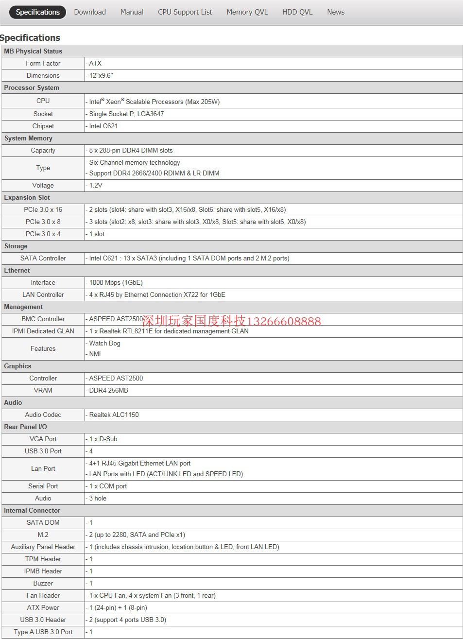 Yongqing EPC621D8A 3647 workstation motherboard supports 8124M 8175M W-3175X 8280