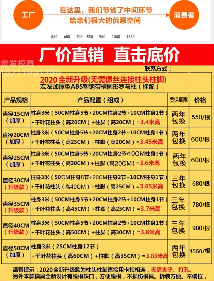Factory direct European Roman column mold Plastic steel column Building gate Cement column Exterior wall cast-in-place round type