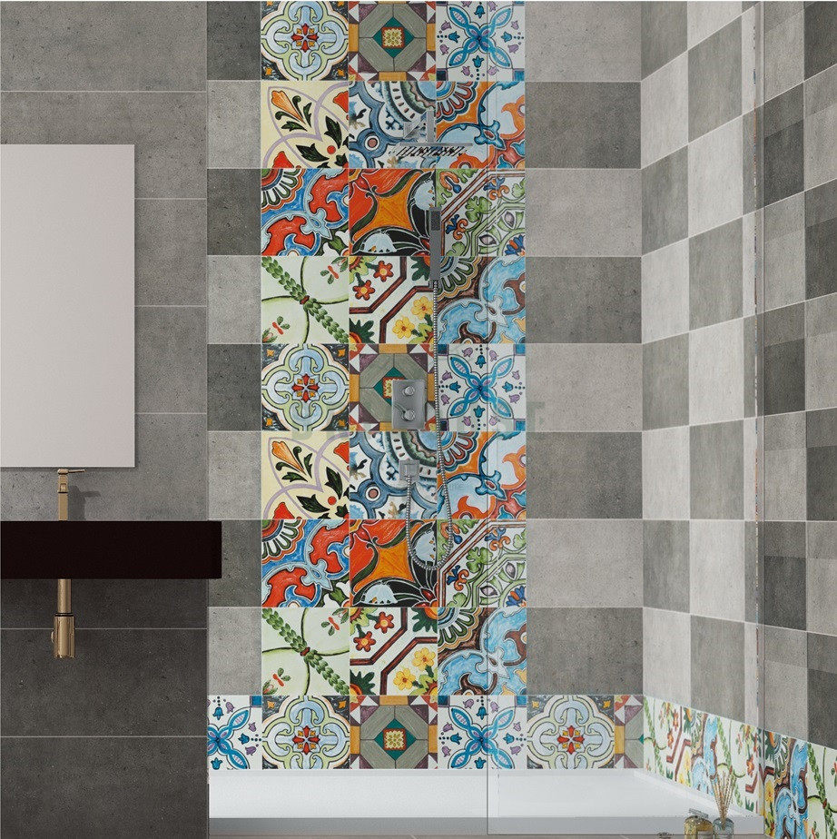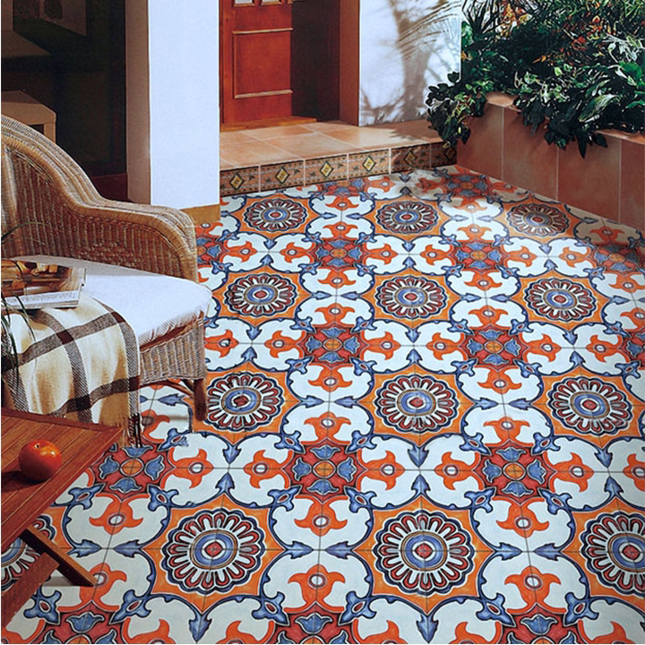 Nordic kitchen dining room background wall color imitation hand-painted flower tiles 300 retro powder room stairs small tiles
