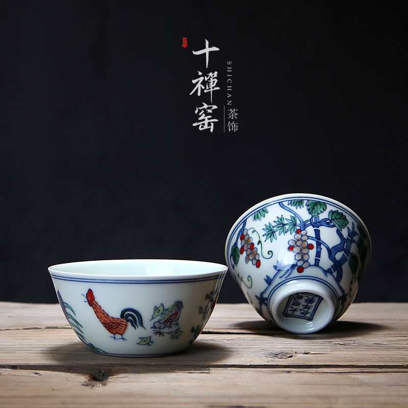 Daming Chenghua Doucai chicken pot cup Handmade master cup Grape cup Jingdezhen antique ceramic Kung Fu tea set