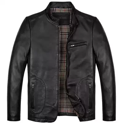 Leakage treatment leather leather jacket men's head layer pure cowhide fashion casual leather jacket stand collar short autumn and winter single coat