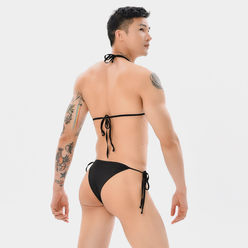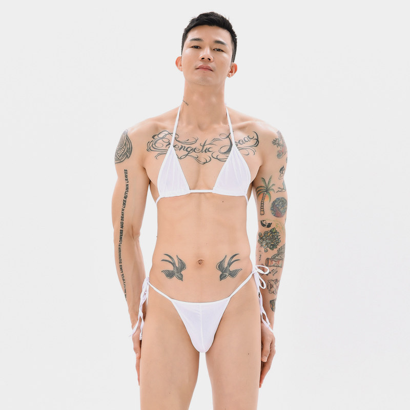 Silk Bra Underwear Set Large Size Low Waist Men's Sexy Bikini Thong Panties Thin Breathable Briefs