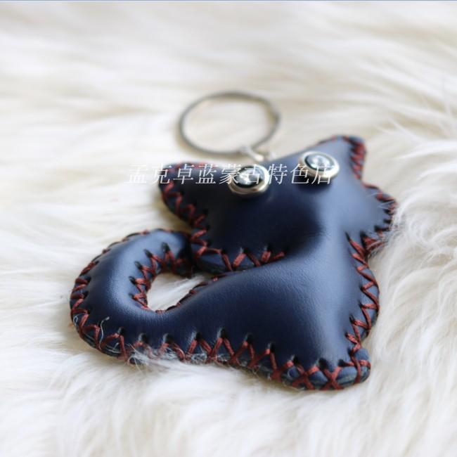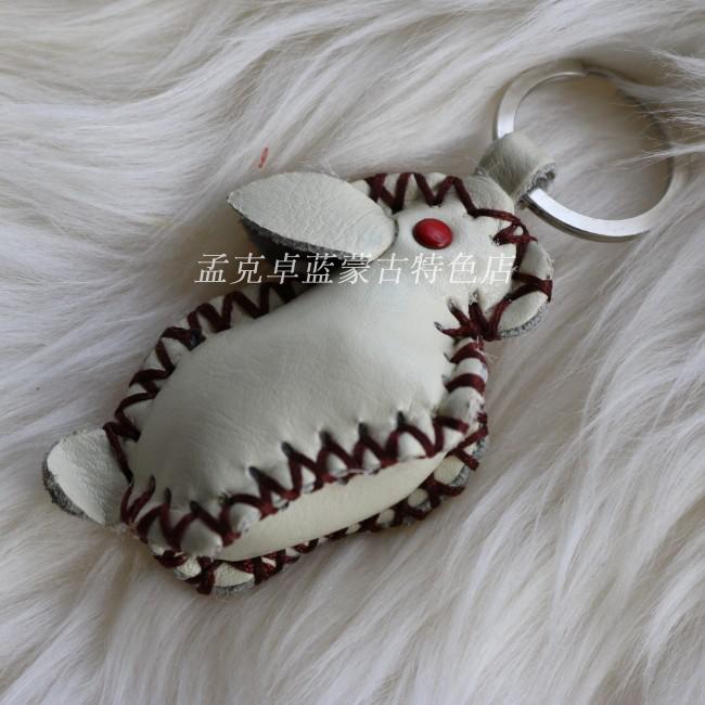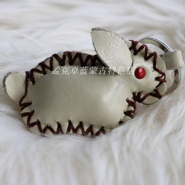 Leather hand-sewn cartoon cute little white rabbit keychain keychain key ring kitten small fish small gift