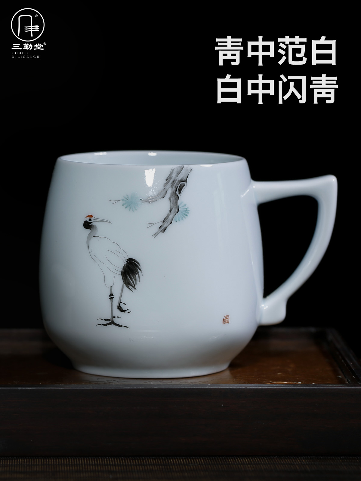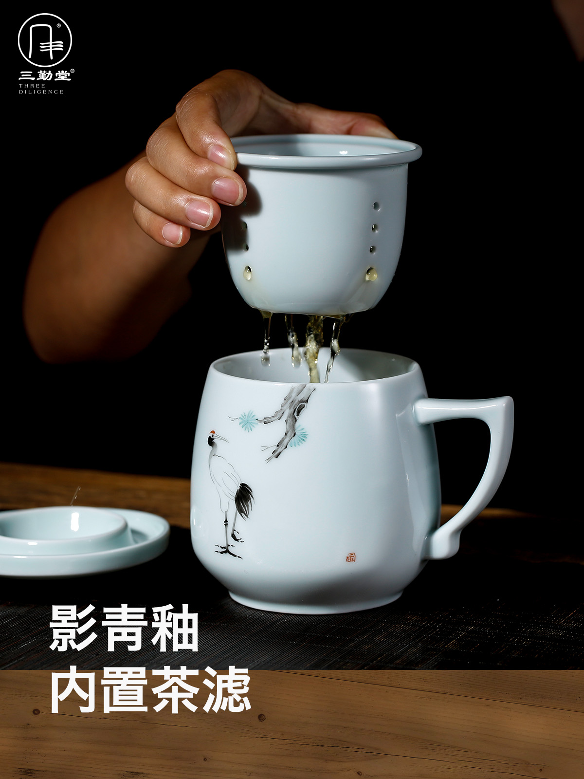 Three-attendance hall tea cup ceramic mug with lid filter Mark cup Jingdezhen office Large capacity tea set S61030