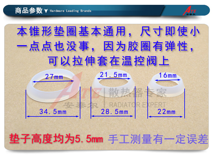 Heating plate temperature control valve sealing valve gasket conical pad resistant high temperature O-joint silicone gasket