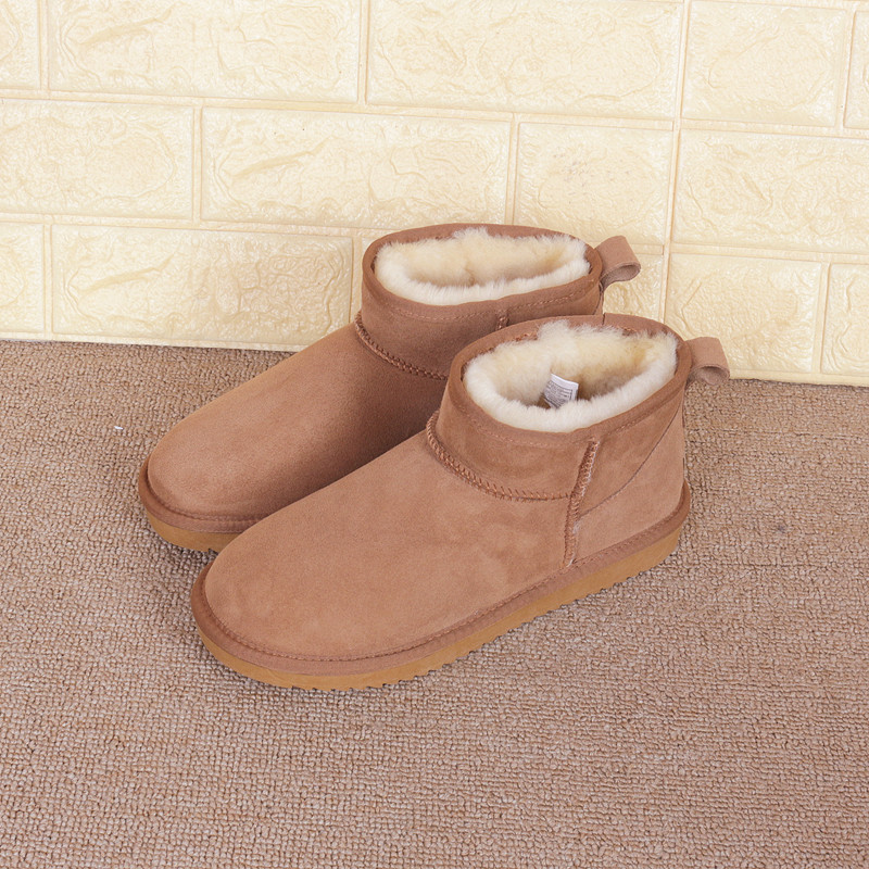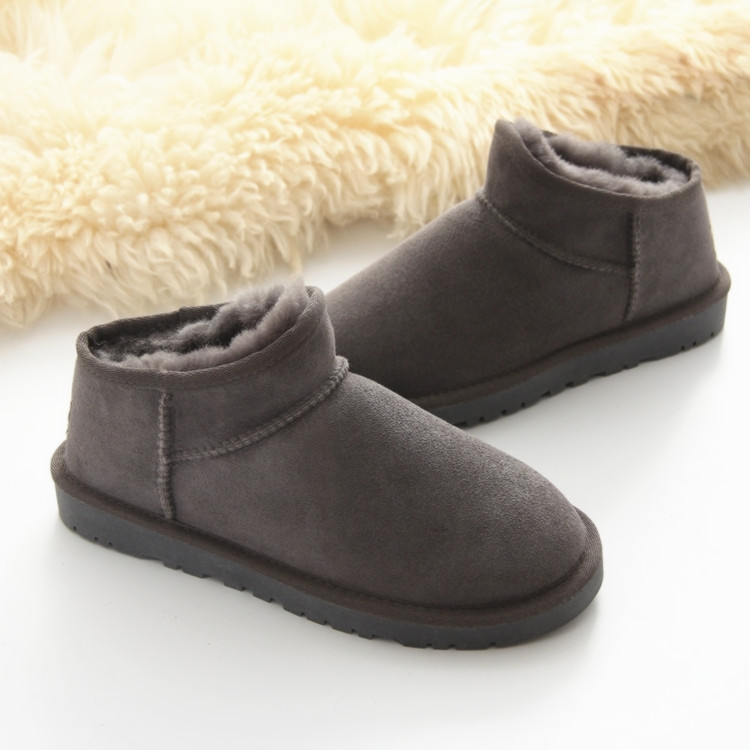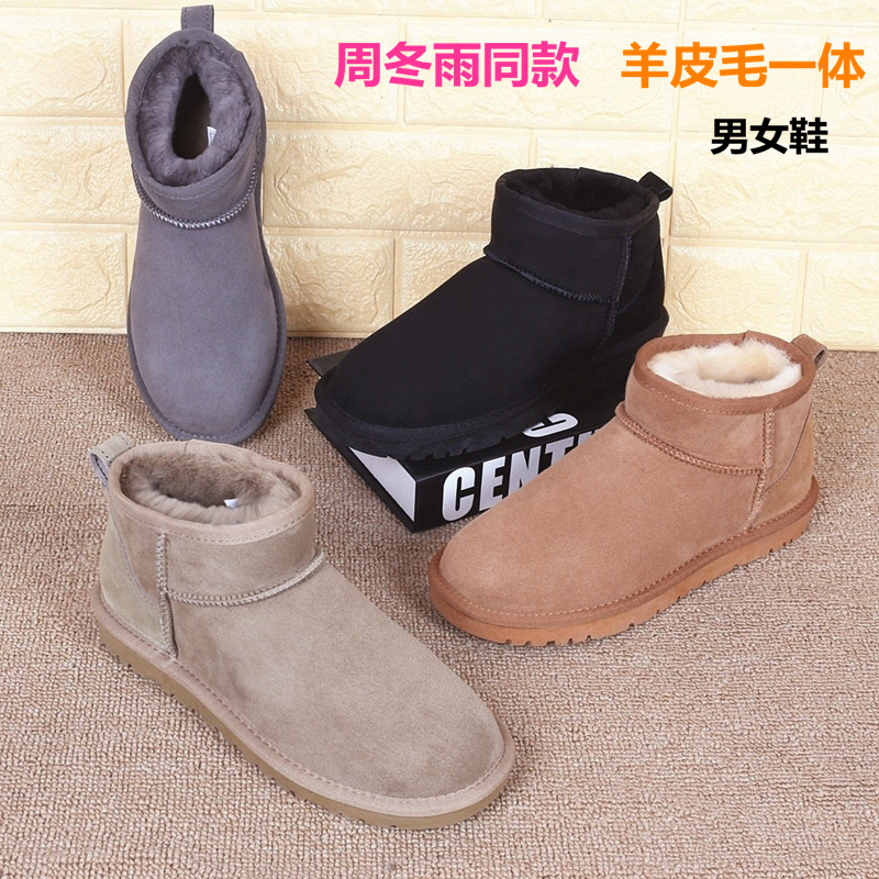 Sheepskin and fur snow boots men's low-top thickened warm pure wool slip-on women's cotton shoes winter bread shoes