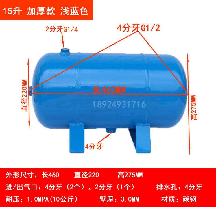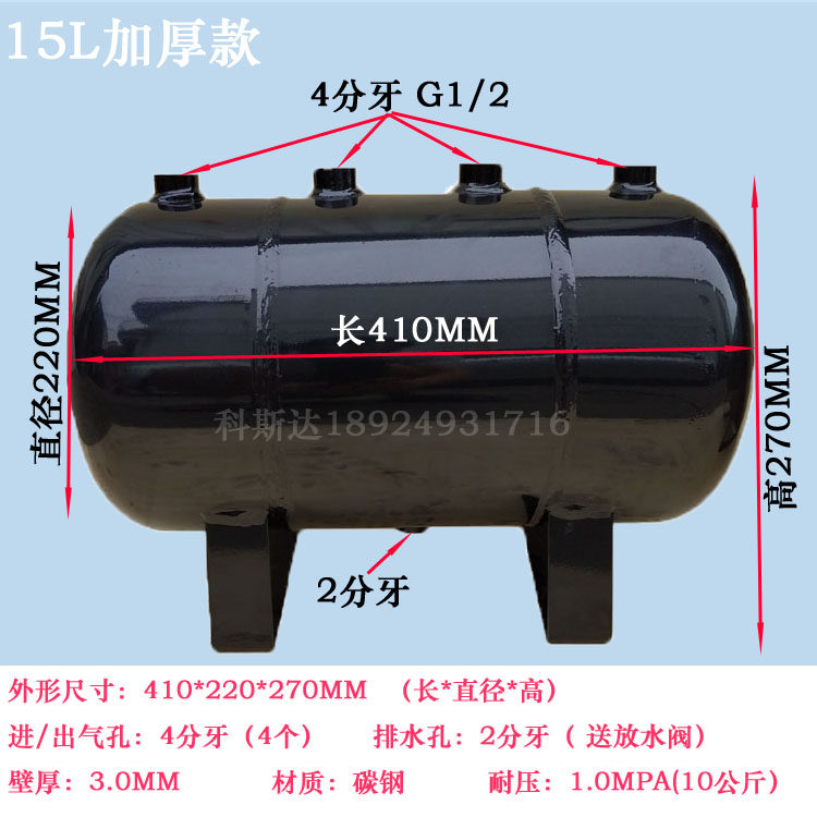 15-liter gas storage tank small horizontal gas storage tank air compressor gas storage tank non-standard gas storage tank vacuum buffer pressure tank