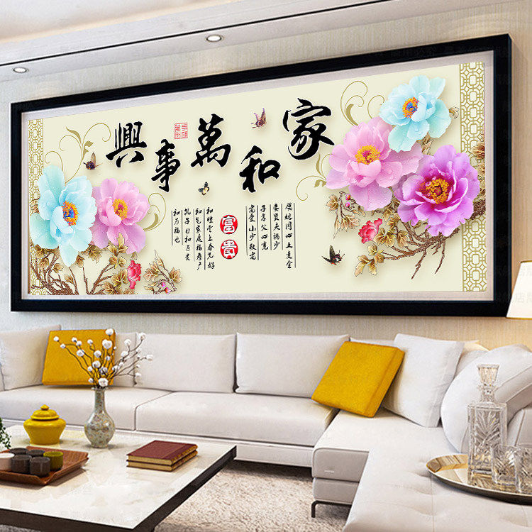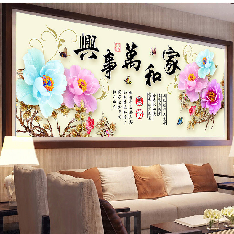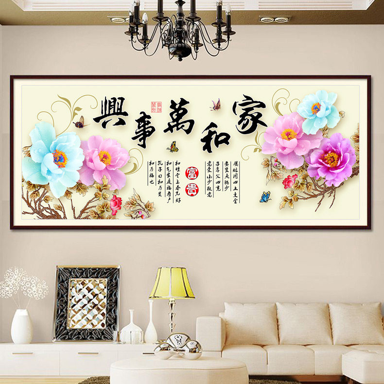 Mona Lisa cross-stitch home and all things are happy calligraphy and painting new living room large peony flower 2 meters 5 full embroidery silk thread section