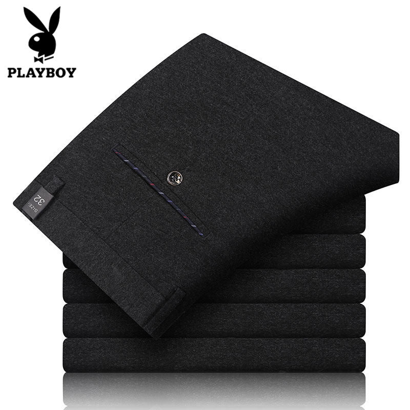 Playboy men's casual pants autumn and winter warm middle-aged long pants 2022 plus velvet dad wear business trousers