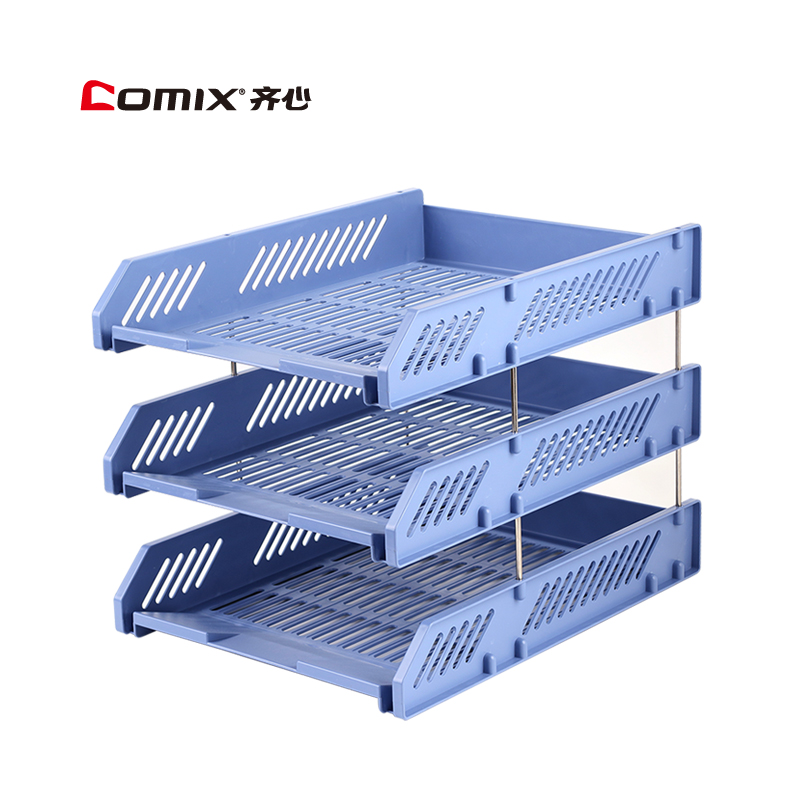 ZiHeart B2060 three-layer File disc File Bar Information Shelf Three-layer blue containing office document holder document frame-Taobao