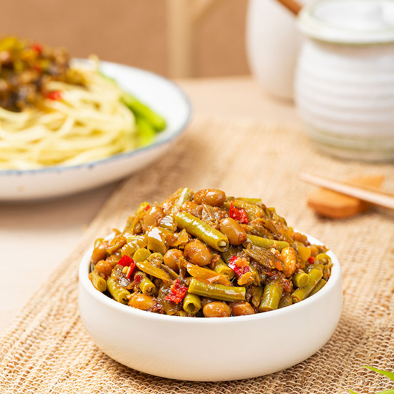 Edible vegetable oil, pepper, big leaf mustard, cowpea, soybean, ginger, edible salt, garlic, pepper, sesame, spices, white granulated sugar, yeast extract, food additive (sodium glutamate 5-sodium nucleoside acid disodium potassium sorbate