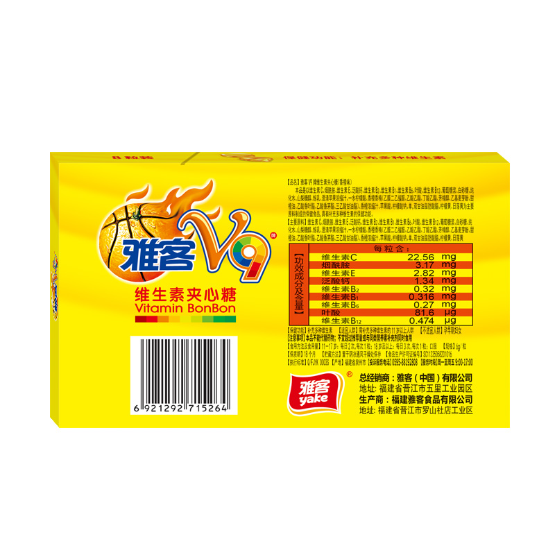 Yavin V9 Vitamins Clip Heart Sugar Hard Sugar 48g * 8 boxes Multi-taste Casual Sugar Water Fruity Candy Snacks