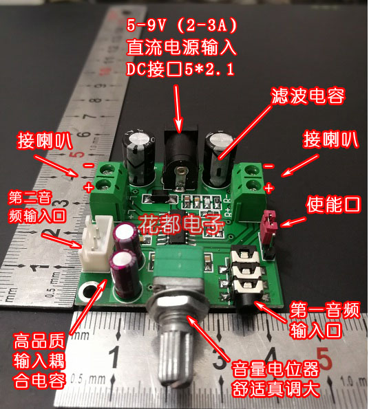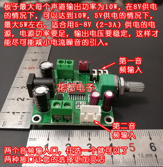 8696 digital power amplifier board 4 Euro 8 European double 10 W output 5V-8V DC power supply volume adjustment mini power amplifier