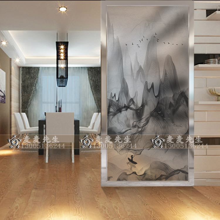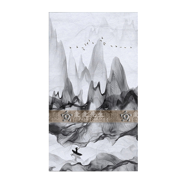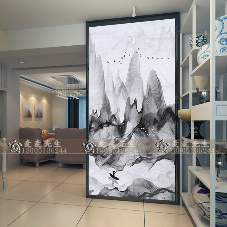 Modern ink painting art glass double-sided translucent screen partition porch living room door corridor decoration abstract landscape