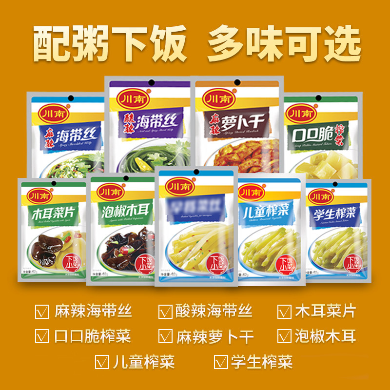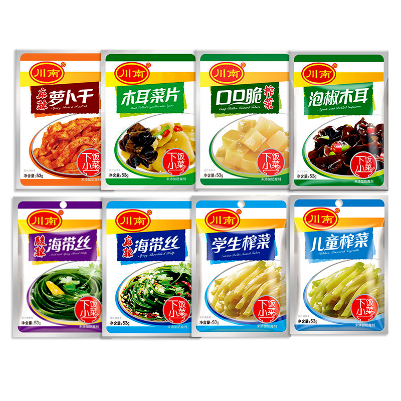 Sichuan South Meal 53g * 50 Mouth Crisp Mouth Crisp Spicy and Spicy Kelp Silk Radish Dried Peppers Agaric pickled vegetables whole boxes