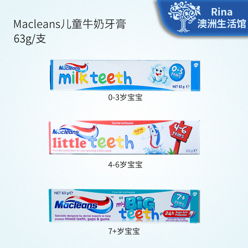rina Australia Macleans Children's Milk Toothpaste 63g Sugar Free Low Fluoride