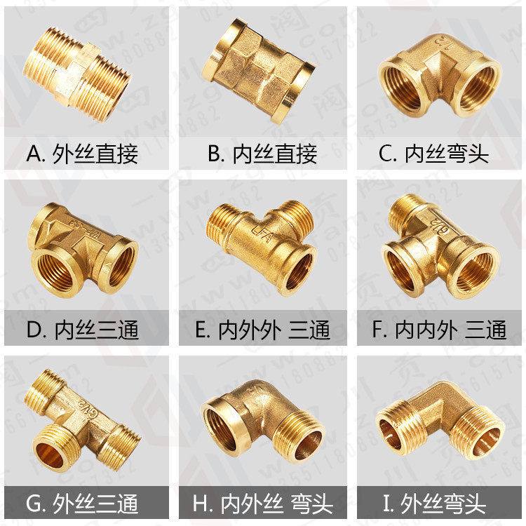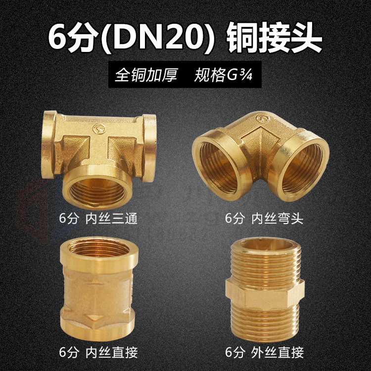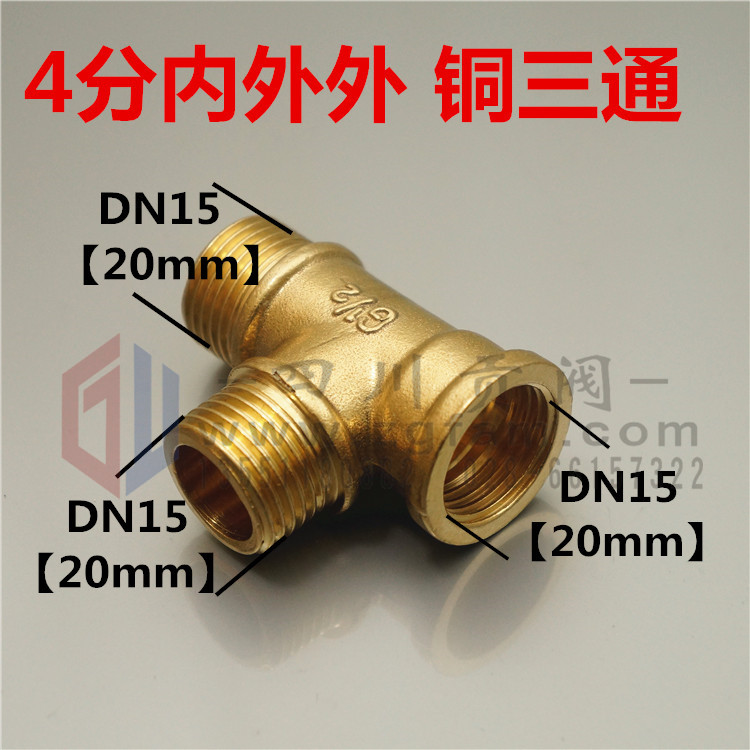 4 points 6 sub-brass inner and outer wire tee elbow direct pipe fitting connector Batamouth adapter external thread tee