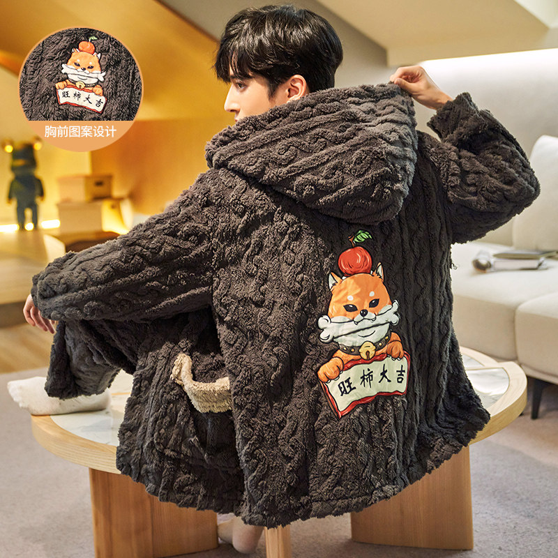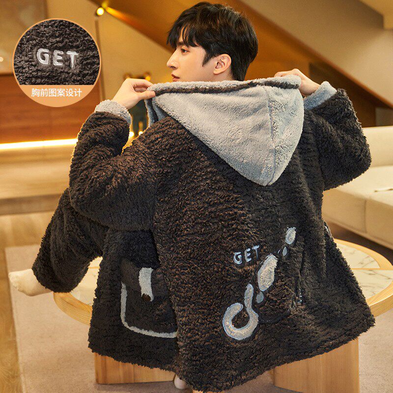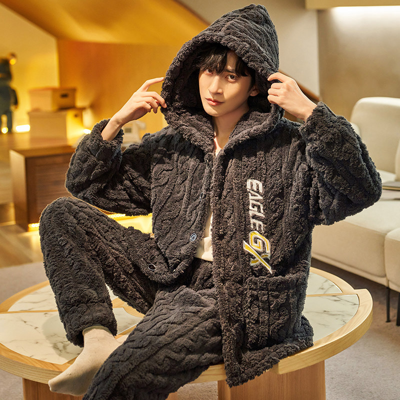 Men Sleeping Clothes Autumn Winter Thicken Plus Suede Long Sleeve Coral Suede Flannel Winter home Clothing Fever Suit Pants