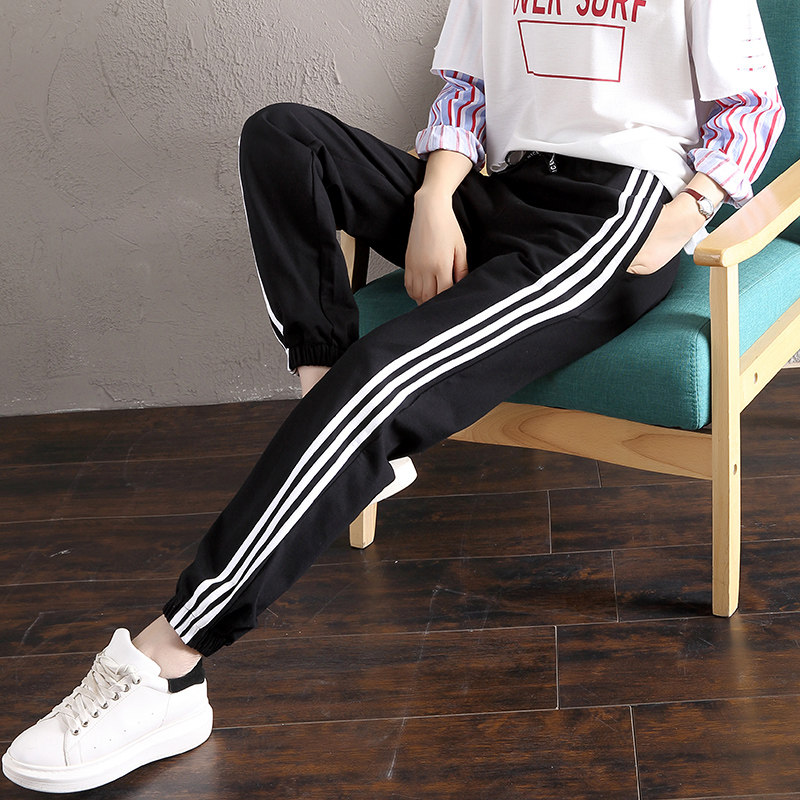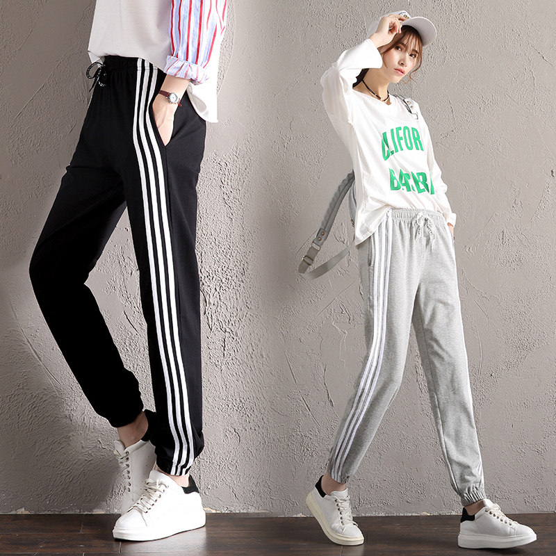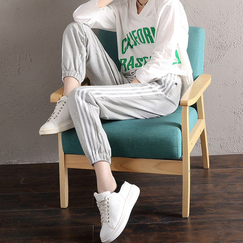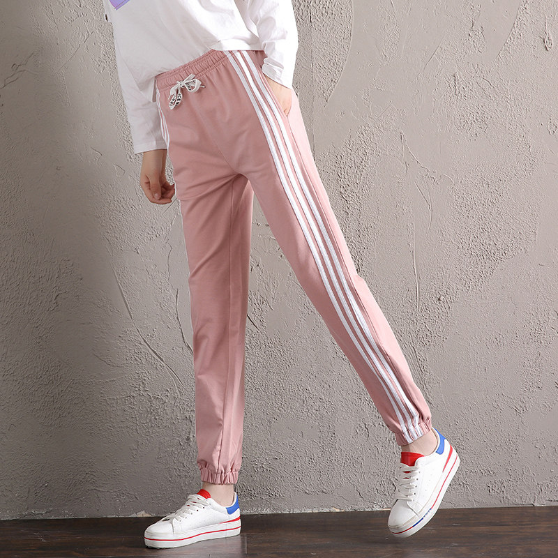 Three pieces of pink sweatpants women's spring and autumn bundle of feet casual bloomers long pants students loose and thin summer thin section