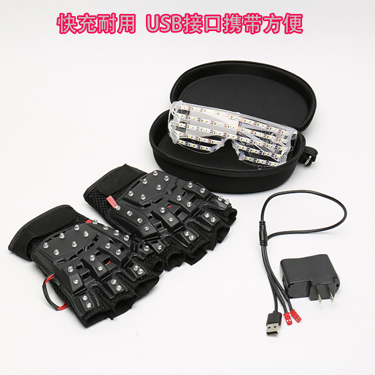 Highlight Flashing Lights Beads Gloves White Light Left Hand Bright Blazing Light Beads Gloves White Light Right Hand Highlighted Pops Beads Gloves White Light white light One pair of glasses One pair of glasses One bright blazing white light Bar glasses brightly lit and white