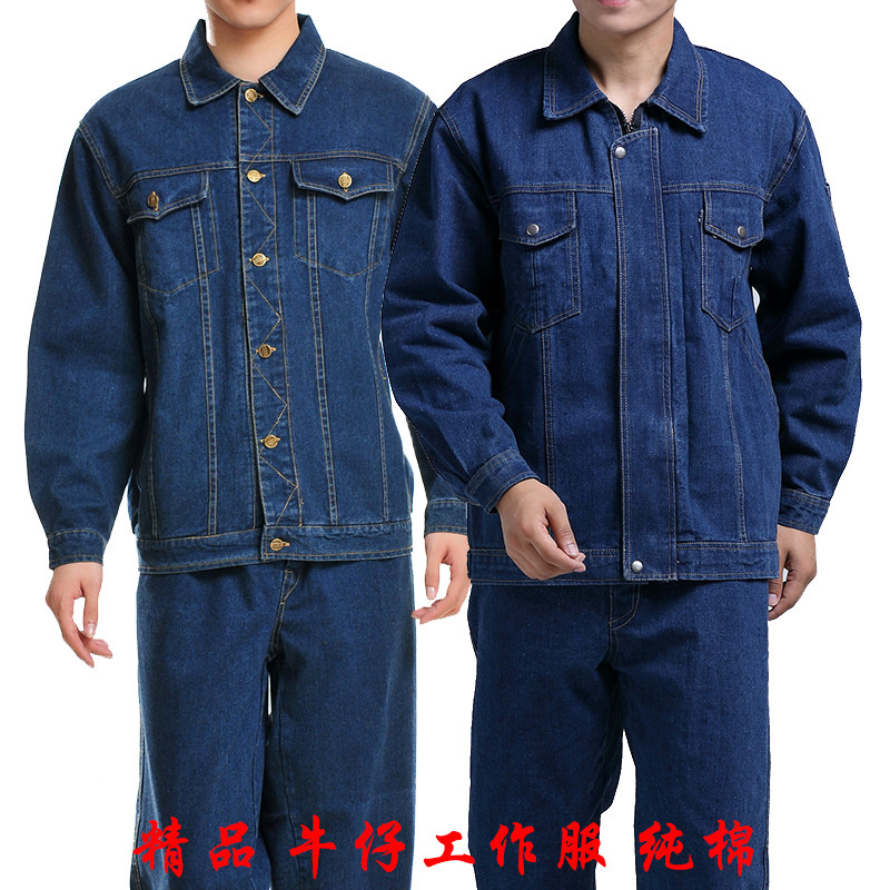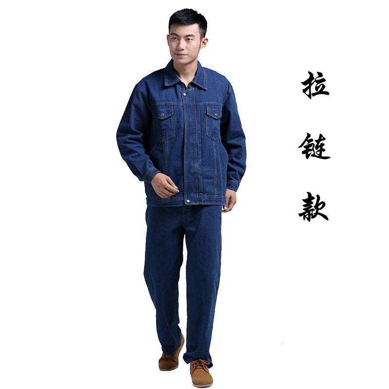 Autumn and winter cotton denim overalls suit suit men's electric welding wear-resistant padded labor insurance suit electric tooling custom zipper