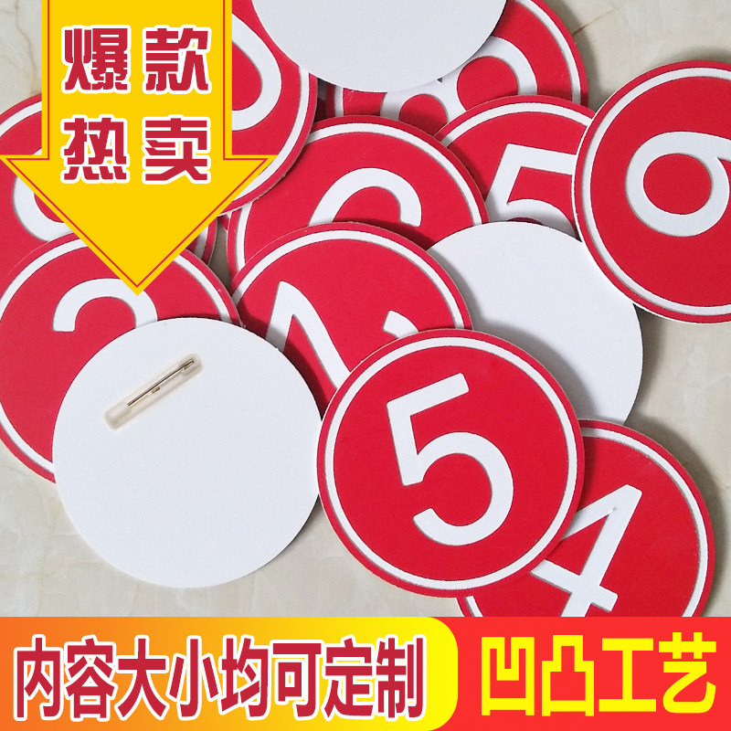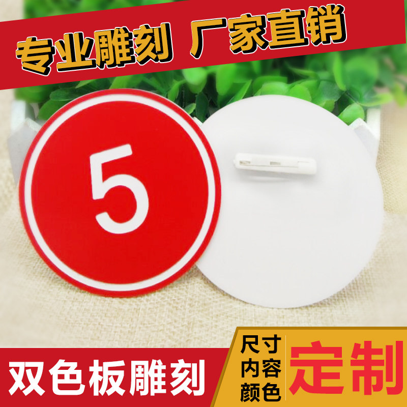 Competition number plate, badge, model card, player number plate, number plate, two-color plate, with pin, customized