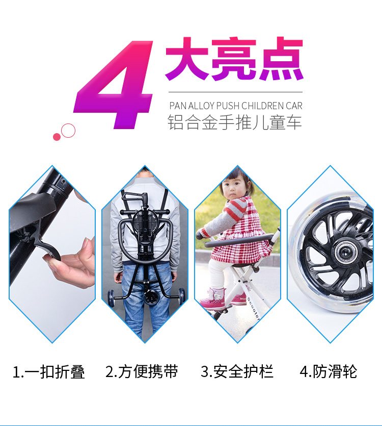 Scooter Walking Baby Artifact Children Three Wheel GuardRail Trolley Baby Light Carry Folding Easy 3-6 Years Old