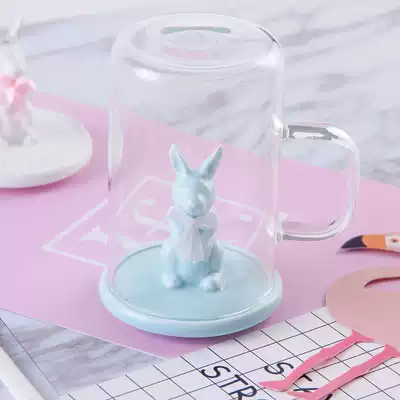 ins Nordic Oats Breakfast Cup with lid spoon cute rabbit soft sister glass girl heart water cup can be Microwave