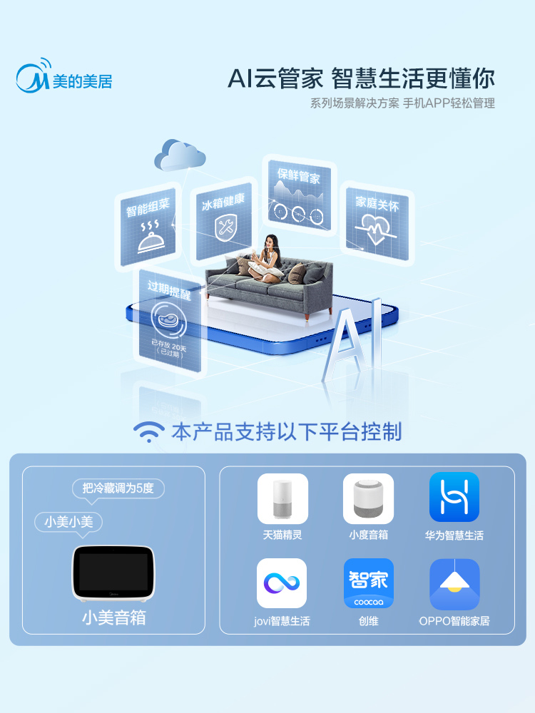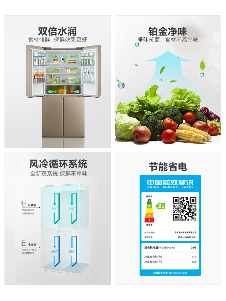 Midea 468 inverter refrigerator 4 four-door home energy-saving air-cooled frost-free cross-pair double-door smart home appliances
