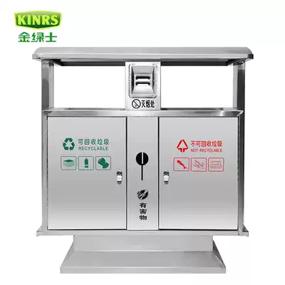 Outdoor trash can 304 stainless steel classification large sanitation trash can outdoor community double slot peel box customization
