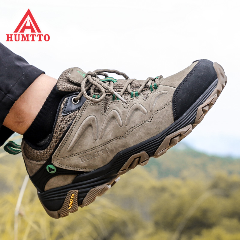 Humvee Mountaineering Shoes Men's Shoes Autumn Winter Genuine Leather Waterproof Anti-Slip Outdoor Shoes Damping Wear and abrasion hiking shoes Large size Sizes Tourist Shoes