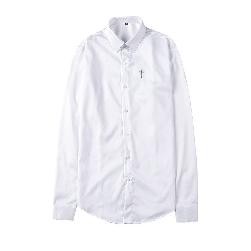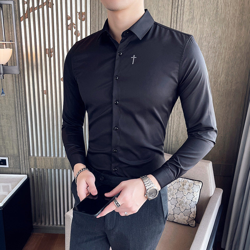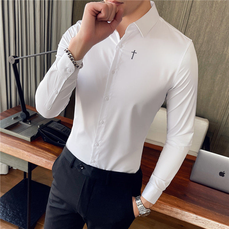 Spring new shirt men's long sleeve casual Korean slim stylist no ironing embroidered shirt men's base inch shirt