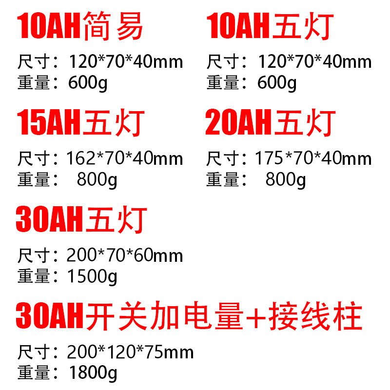 10AH power (no charger) day energy core 10AH power (electric quantity 1A charger) 15AH power (5 light power) 1A charger 15AH power (5 light power