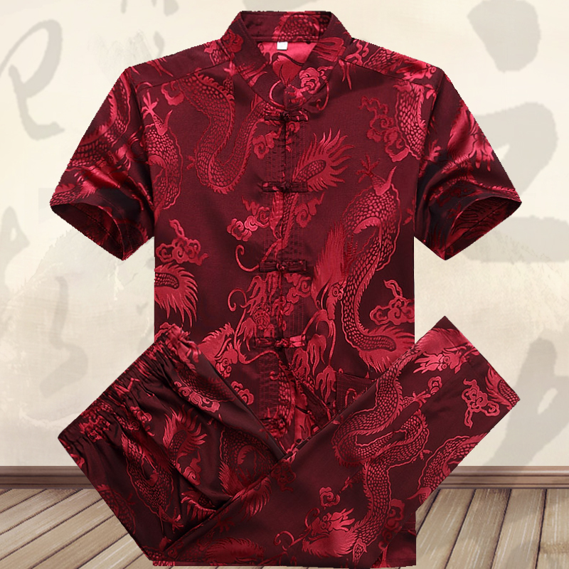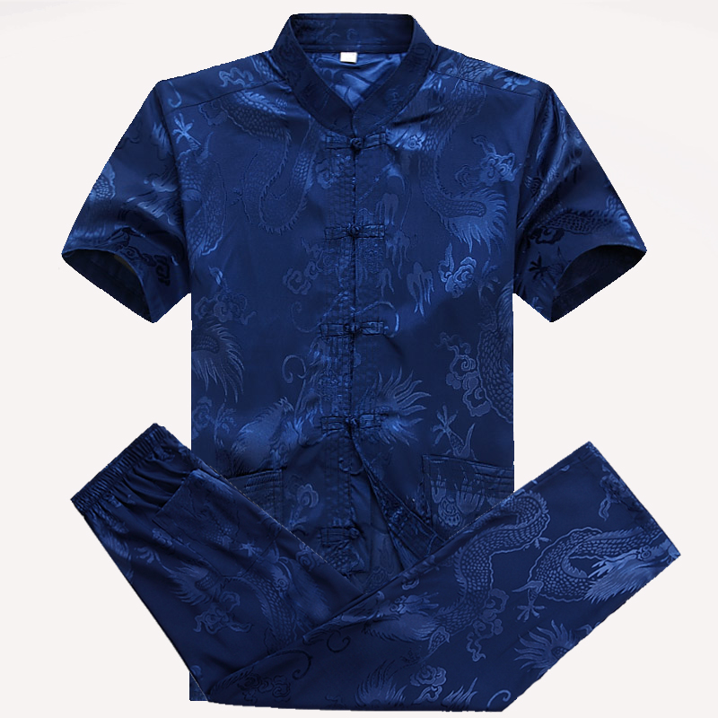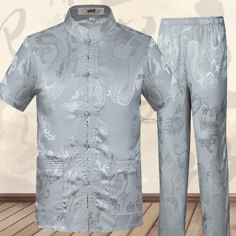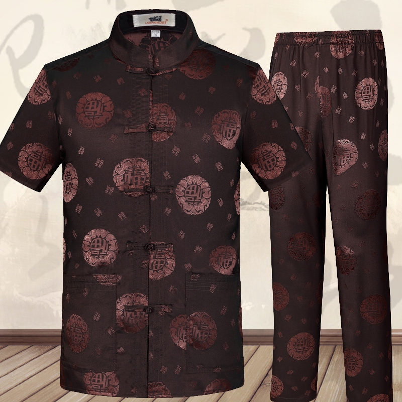 Middle Aged Tang Dress Short Sleeve Men Suit Summer Shirt Upright Collar Chinese Pan Button Loose big size Dad Grandpa