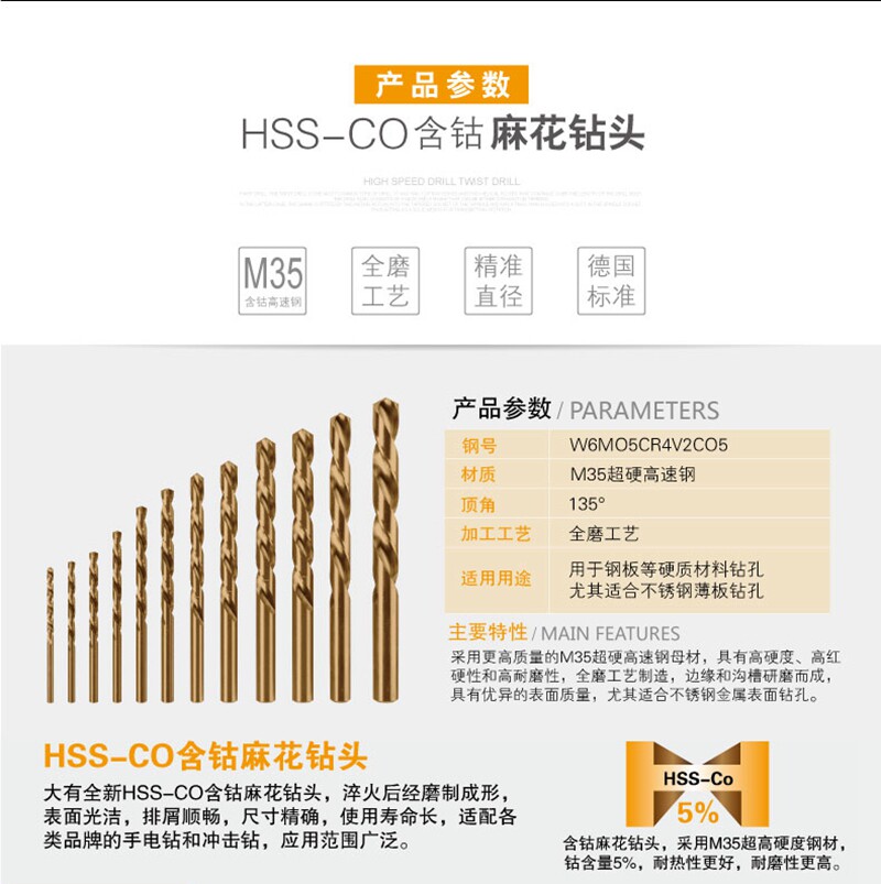 Cobalt-containing 3 0mm spark drill containing cobalt 3 2mm spark drilling containing cobalt 3 5mm spark drilling cobalt 4 0mm spark drilling containing cobalt 4 2mm spark drilling containing cobalt 4 5mm spark drill