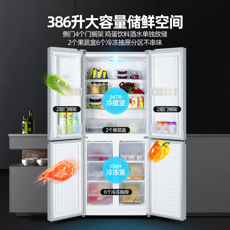 Konka BCD-386 cross door refrigerator household energy-saving ultra-thin double door four door four door refrigerator