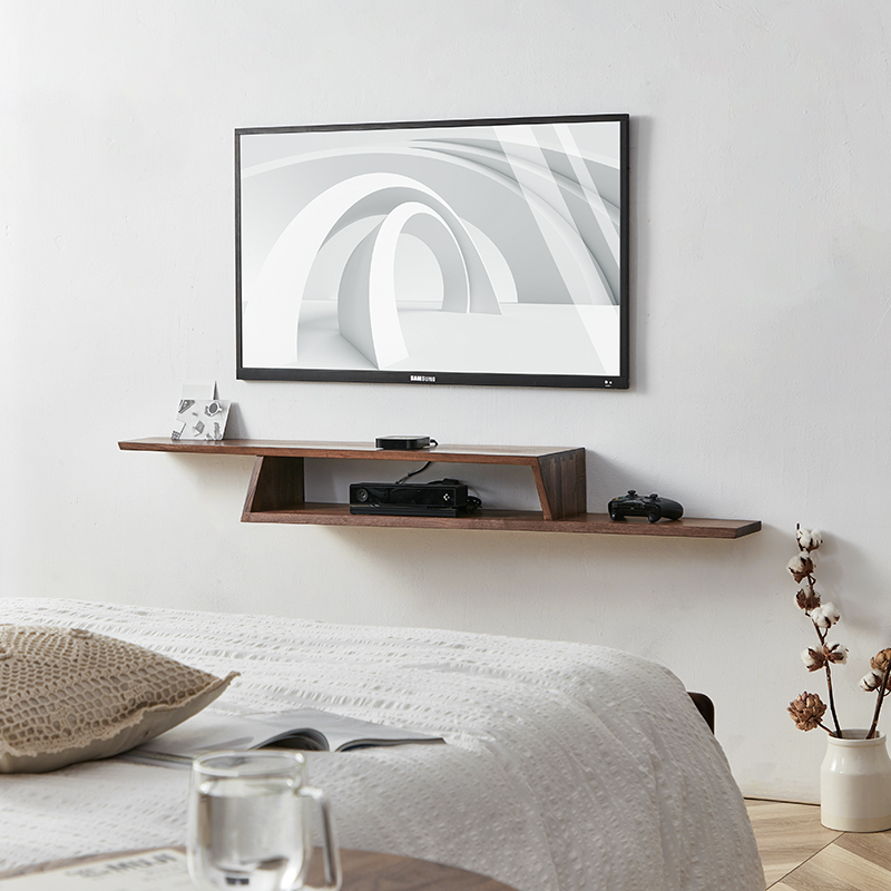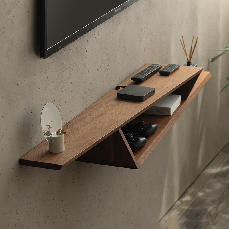Solid wood creative set-top box rack Nordic wall shelf bedroom hanging wall hanging TV cabinet wall TV
