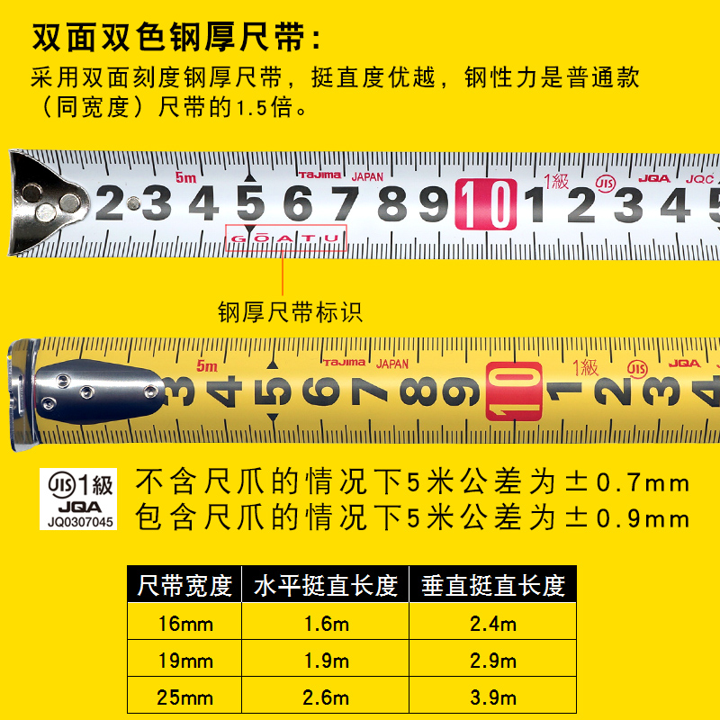 Tajima tape measure automatic lock 5 meters 3.5 meters Japan high precision wear-resistant thickening hardening imported steel tape measure