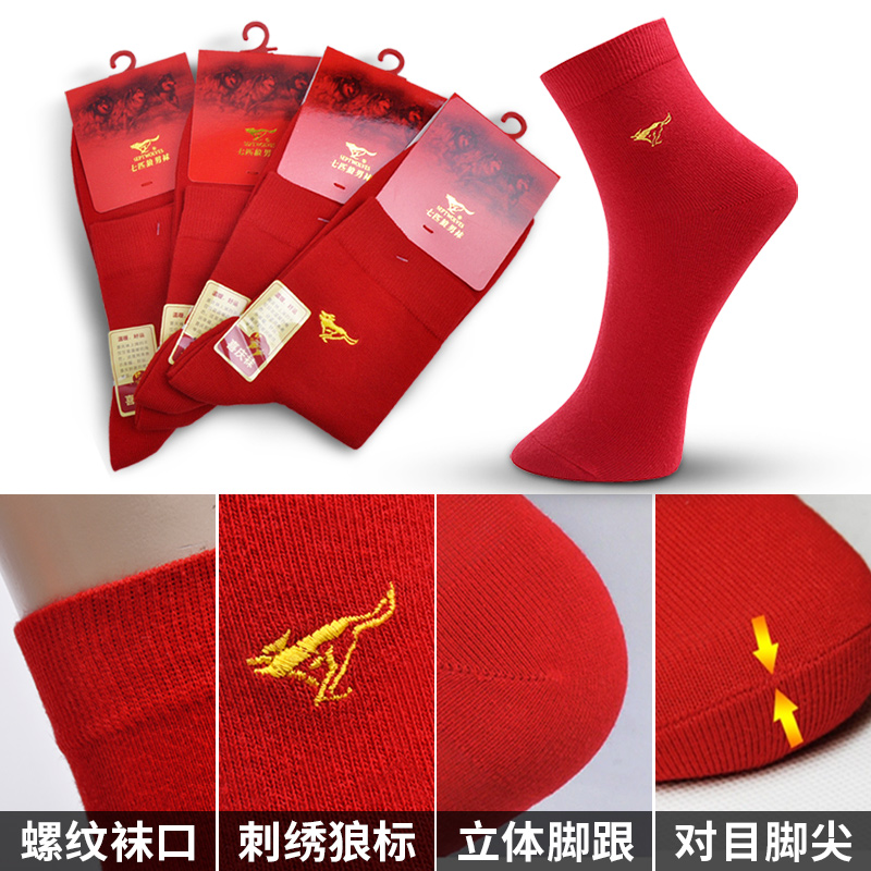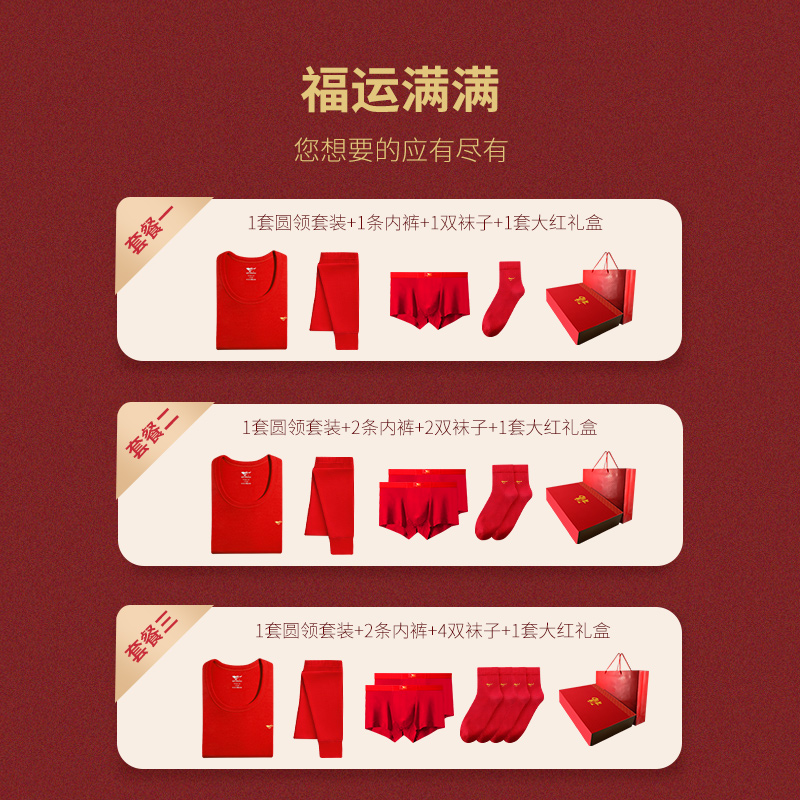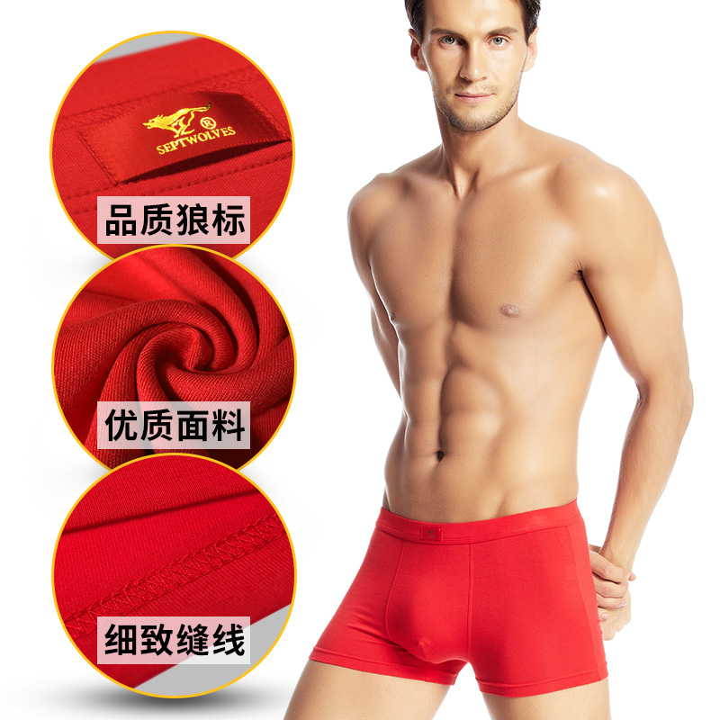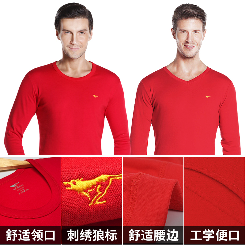 Seven Wolves Ben Year Great Red Underwear Suit Men's Warm Pure Cotton Autumn Clothes Sanitary Pants Wedding Gift of the Year of the Tiger