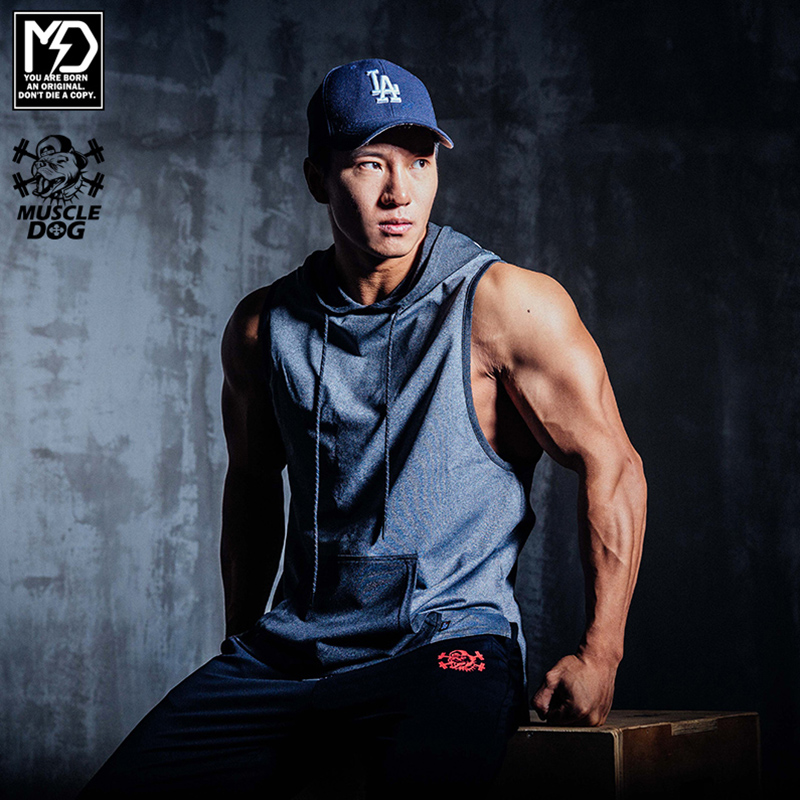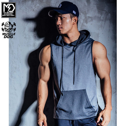 Muscular dog sleeveless loose even cap workword boardeo running with iron blouses fitness clothes training sports vest men