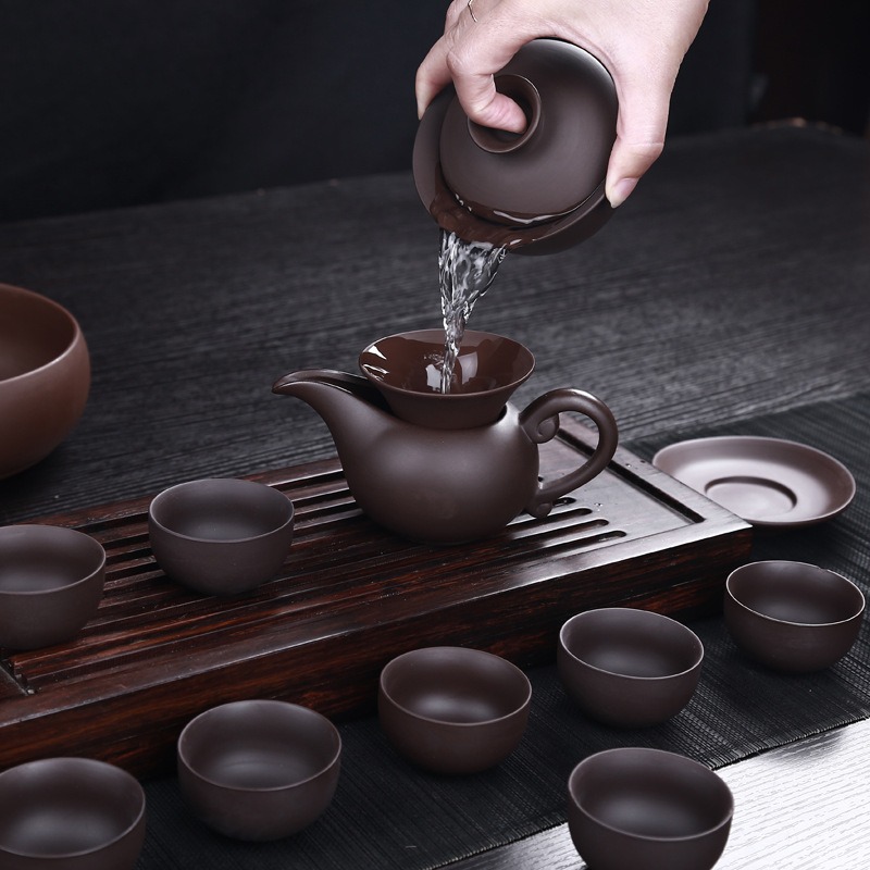 High-grade raw mine purple sand tea set kung fu tea set ice crack Ru kiln ceramic gift tea set Tea Pot Cup set